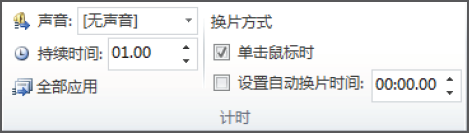 在“换片方式”栏中可选择幻灯片的切换方式,主要有以下两种情况。