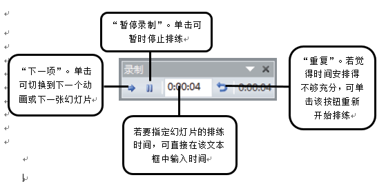 在正式放映幻灯片之前,可预先统计出放映整个演示文稿和放映每张幻灯片所需的大致时间,通过排练计时可以使演示文稿自动按照设置好的时间和顺序进行播放,从而使放映的整个过程不需要人工操作,如图3-3-63所示。