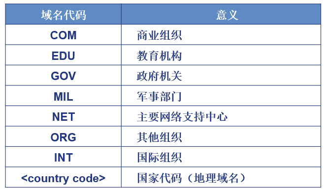 域名 (Domain Name) 的实质就是用一组由字符组成的名字代替IP地址。域名的结构为: