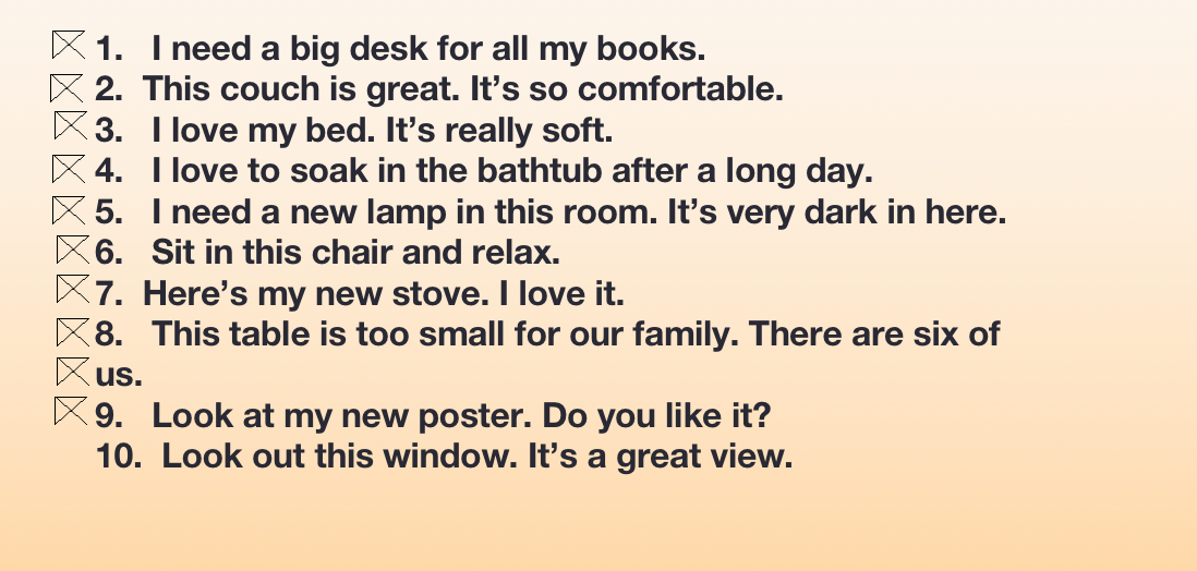 1. Match the pictures with sentences. 将图片与对应的句子进行配对。