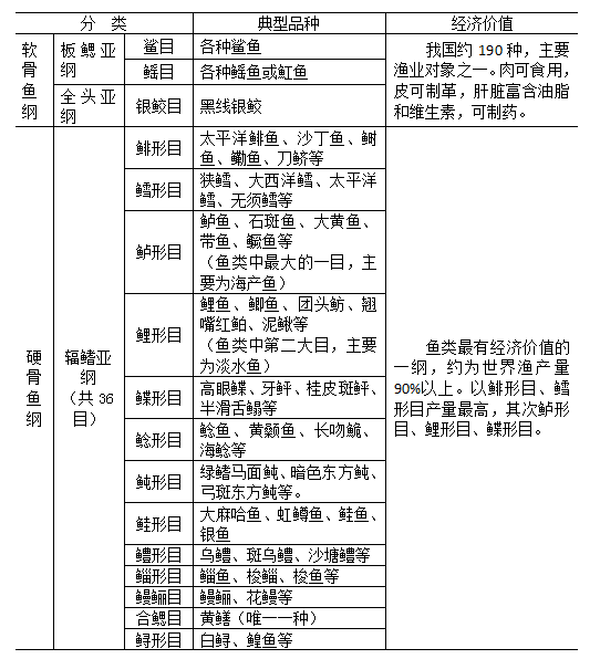 ● 了解鱼类的分类、外部形态、内部结构和营养价值
