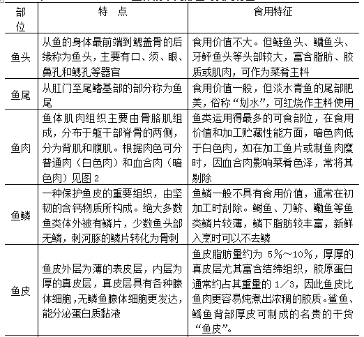 鱼体不同的部位特点不同,食用价值不一样,见表3。