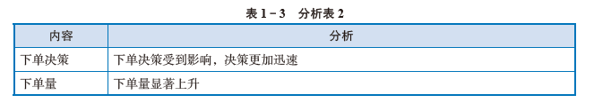 第三步:王新对下单决策、下单量进行了分析,如表1 - 3 所示。