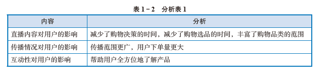 第二步:王新从直播内容、传播情况以及互动性等方面进行了分析,如表1 - 2 所示。