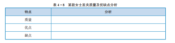 第一步:收集某款女士发夹质量情况及优缺点等信息,并完成表 4 - 8。