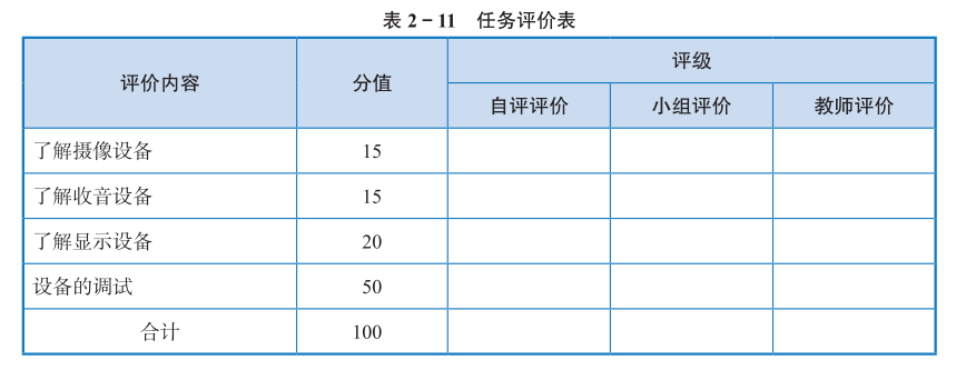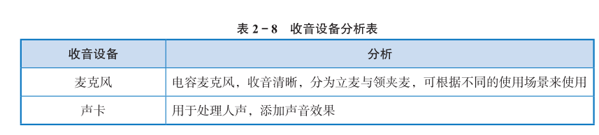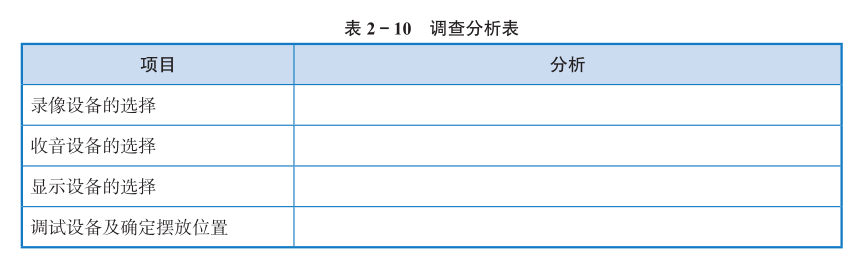 王新购买了直播间需要的灯光设备并布置好,工作室的老师又安排他选购直播间的影音设备,并进行调试。为了让工作室直播工作顺利推进,王新制订学习单(见表 2 - 6),用以梳理直播影音设备相关知识。