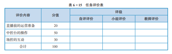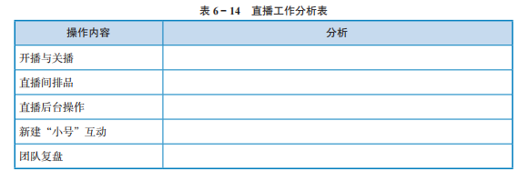 任务描述:请你扮演后勤运营团队成员,分析中控台应如何配合主播进行直播并填写分析表(见表 6 - 14)。
