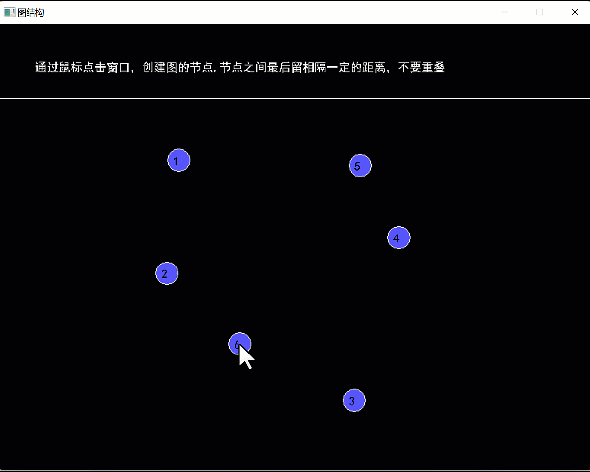 (1)点击鼠标在窗体中创建图的节点(按回车或节点个数等于节点的最大值结束)(已提供)