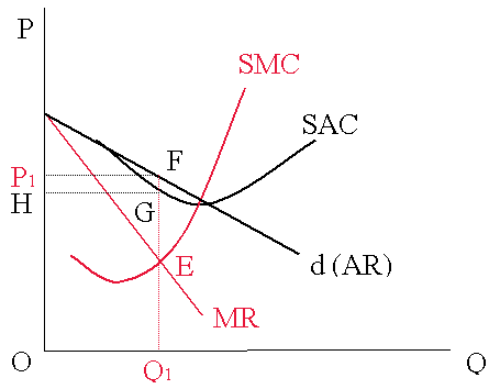 3、也存在三种可能:有超额利润、盈亏平衡、有亏损(最小)→取决于P与SAC关系