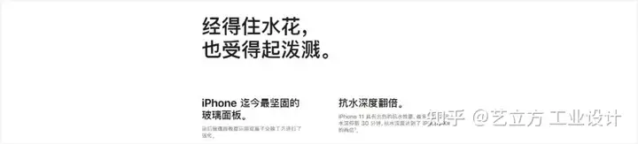 以iPhone11官网展示为例,第一张图加一行“一见倾心,现有六次机会”基本就告诉了他的产品配色的丰富性(核心理念表达),因为在这之前苹果这个系列没有这么丰富的色彩配置,所以用一张配图加以说明。