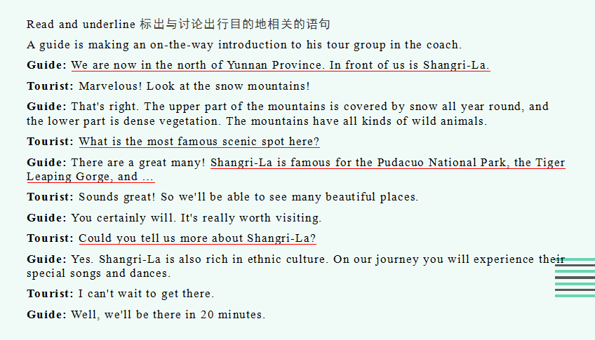 在大巴车上,一名导游正在向旅行团进行途中介绍。(对话背景)