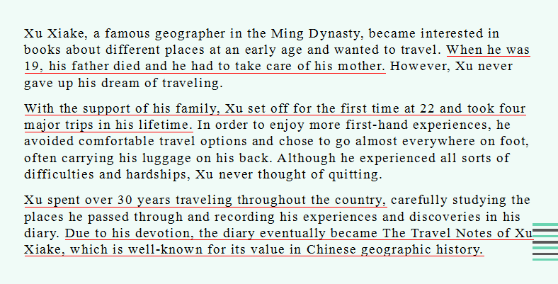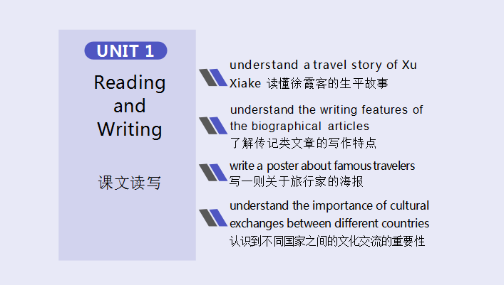 • 难点:结合海报要求,从介绍徐霞客和马可波罗的文本中提取主要信息完成海报。
