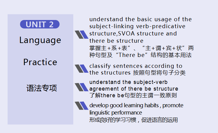 There be 句型的构成形式一般为“There is/are + 某物/人 +某地/时”,表示某地/时有某物/人。其中,there 是一个引导词,没有具体实际词义,be是谓语动词,人或物才是这个句型的主语,属倒装结构,地点在句中作状语。