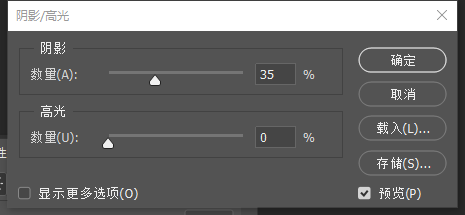 “阴影”:“数量”选项用来控制阴影区域的亮度,值越大,高光区域就越暗。