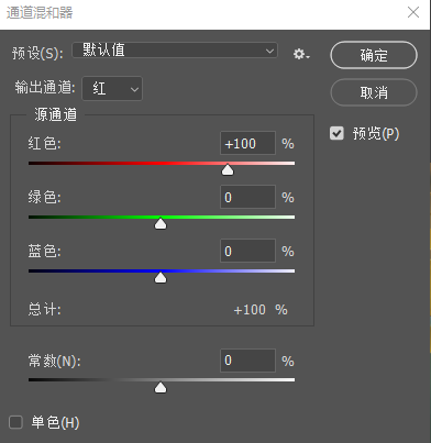 (1)功能:可以对图像的各单色通道分别进行调整,并混合到主通道中产生一种图像合成的效果;也可以用来创建高品质的灰度图像。
