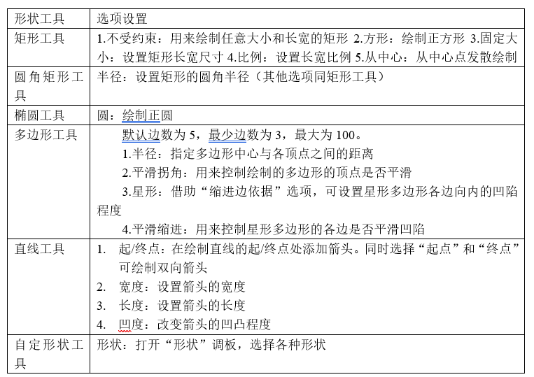 (1)“形状”:绘制图形时将创建新图层,所绘制的形状将被放置在形状层蒙版中;