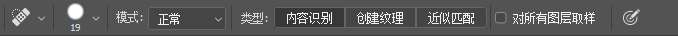 该工具提供了三种修复类型,分别是内容识别、创建纹理和近似匹配。