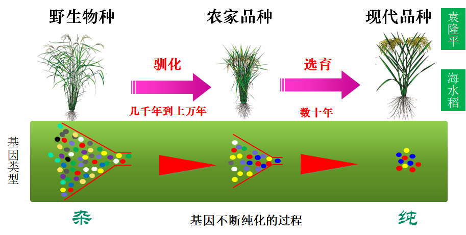 例1:人类在9000年前为了满足自身需求,已对植物进行了从无意识到有意识的改造,其中水稻育种的成就解决了全球粮食问题!