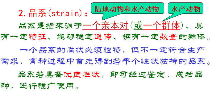 (2)地方品系:在品种的发展过程中,随着动物群体的不断扩大,分布区域也会逐步扩大,由于各地的自然条件不同,饲养管理水平和方式的区别,品种内会出现差异。具有这样差异的类群可以称为地方品系。