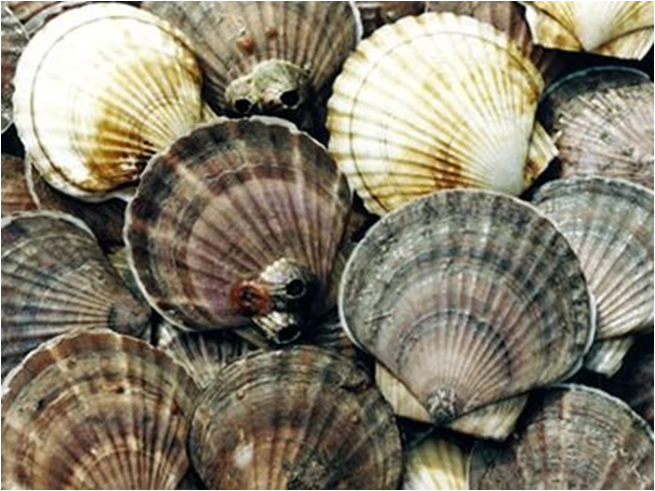 2.虾夷扇贝(Patinopecten yessoensis)---原产于俄罗斯(千岛群岛南部水域)、日本(北海道及本州岛北部),低温高盐种类,对温度和盐度的要求较严格,正常生活的温度范围为5-23℃,盐度范围为24-40‰。1981年,由中国科学院海洋研究所和辽宁省海洋水产研究所从日本引进。引进后,由于其大个体及大规格的闭壳肌特点大大提升其商业价值,在黄渤海得到大面积推广。