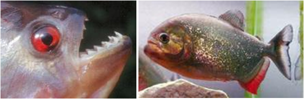 食人鱼(Pygocentrus nattereri )(Piranha)又称“食人鲳”,是南美洲食肉的淡水鱼,颈部短,头骨特别是腭骨十分坚硬,牙齿尖利,上下腭的咬合力大得惊人,能够轻易咬断用钢造的鱼钩或是一个人的手指头,非常凶猛。食人鱼可以在10分钟内将一只活牛吃剩一排白骨。亚马逊河、圭亚那河、巴拉圭河等河流是食人鱼经常出没的场所。