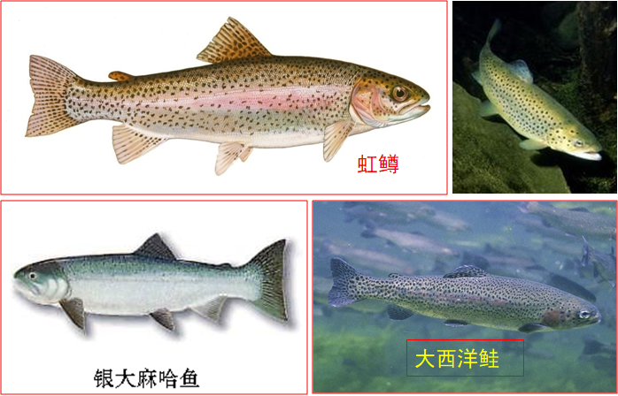 河鳟、银大麻哈鱼、大西洋鲑、红点鲑、白点鲑、高白鲑、楚德白鲑和奇尔白鲑等冷水性鱼类被我国陆续引进,有些已经取得了良好的养殖效果。