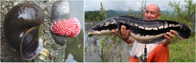 原产于南美洲亚马逊河流域,1981年由巴西籍中国人引入广东。福寿螺适应环境的能力很强,繁殖很快,而且食量大、食性杂,逃逸到自然界以后迅速扩散于河流、湖泊和田野,大量的吞噬粮食作物、蔬菜等,已成为广东、广西、福建、云南、浙江、上海、江苏等地的有害动物。