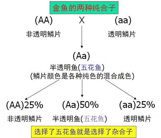 上述情况非常容易根据表现型区分纯合子(AA、aa)和杂合子(Aa),只需通过直观观察即可选出。例如: