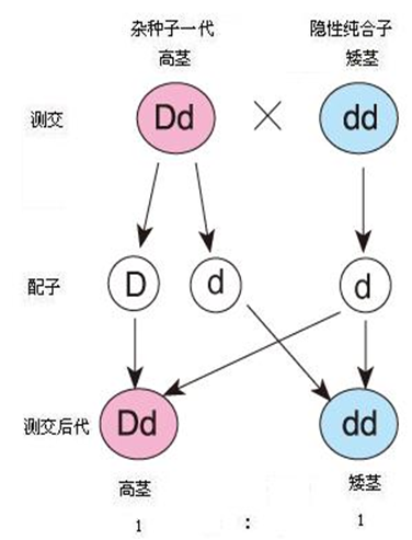 将待测亲本显性个体测交(test cross)或自交(inbreeding),再根据测交或自交结果,淘汰杂合体,只留下显性的纯合体。