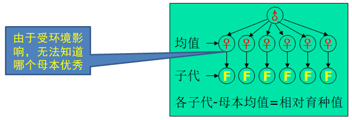 为了方便,采用相对育种值----子代距母本群体平均数的平均离差表示。谁大就选谁。