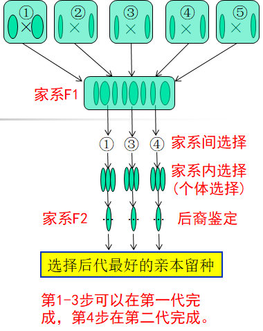④加速选择进展,从一个混杂的群体或杂交体中如不通过近亲繁殖,单靠选择,能遗传的优良性状极不稳定,改进的效果也就极慢。因此,家系选择在选择育种中占有重要的地位。