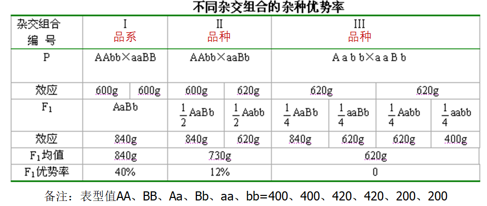 4.以列表形式举例说明不同杂交组合杂种优势率的差异。