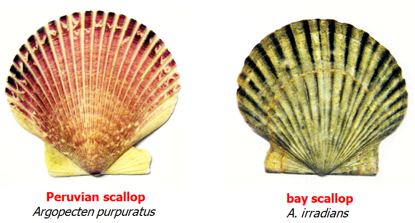 引进种:紫扇贝(Argopecten purpuratus),原产于南太平洋的一种速生型中型扇贝,目前在智利和秘鲁已开展大规模的人工养殖,是世界上公认的优良养殖种类。