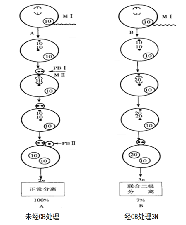 例如,在25℃条件下,用1mg/L的CB处理太平洋牡蛎受精卵(受精后30~45min)15min,诱发得到88%的三倍体。