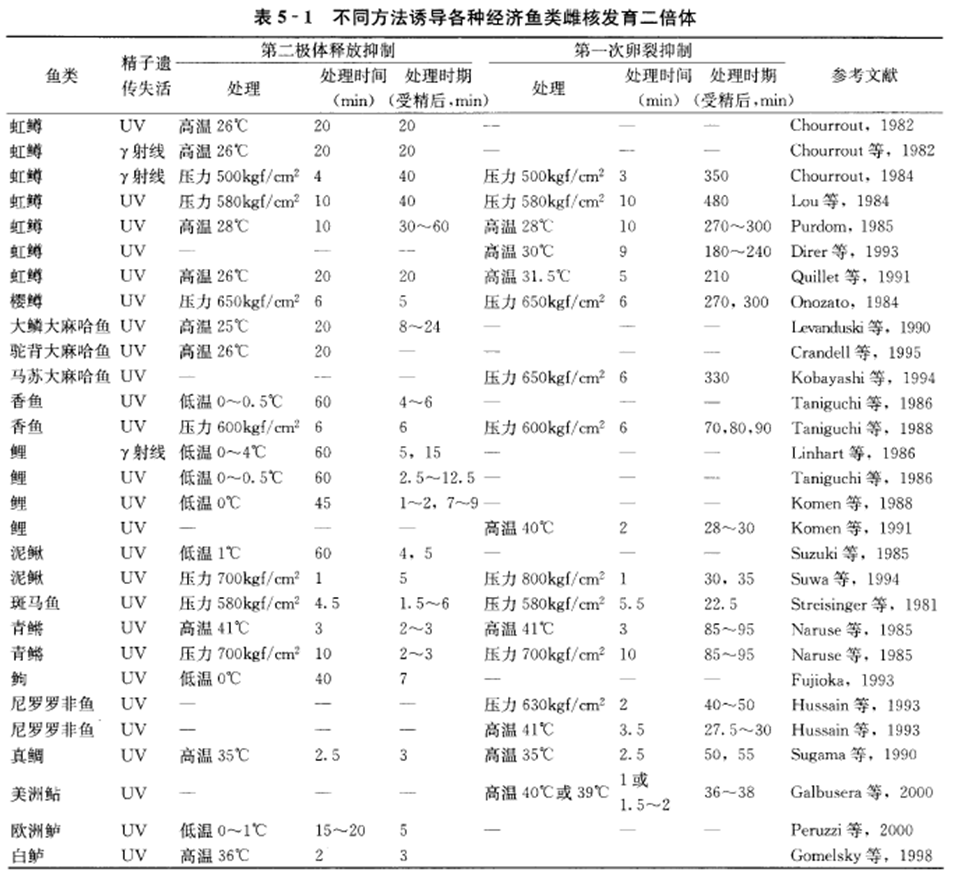 ①迄今已获得人工雌核发育二倍体的鱼类有30多种(表5-1)。