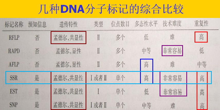 ①AFLP 结合了 RFLP 和 RAPD两种技术的优点,具有分辨率高、稳定性好、效率高的优点;