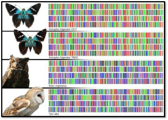 NA barcoding作为生物“种水平species-level”鉴定的工具引人注目。Genbank数据库中CO I序列(细胞色素c氧化酶亚基 I)正在快速增加。Min等分析了CO I序列及其来源基因组核苷酸含量之间的关系,结果表明849个CO I基因的5端的DNA barcoding序列令人惊奇地准确地代表了其来源完整线粒体基因mtDNA的重要信息,也就是说对于未测序的基因组,从DNA barcoding能快速预知完整基因组的组成 。