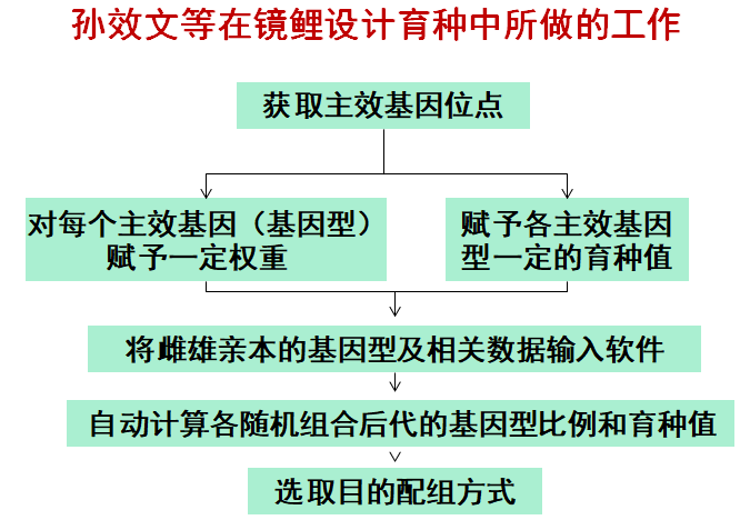 ③根据选择性状的所有主效基因座的最佳基因型建立计算机软件来设计最佳的雌雄配组方案(多基因组合成最好的子代的基因座)。