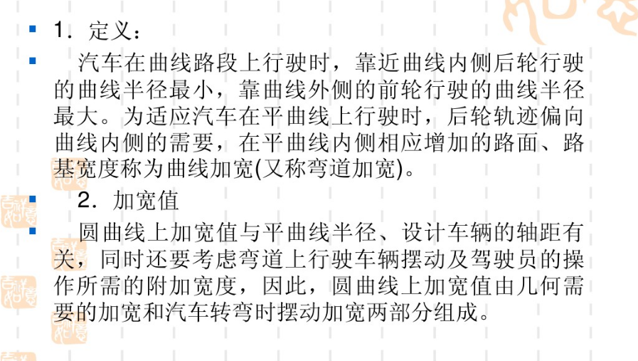 2、加宽应设置在曲线段 侧,当圆曲线半径 需要加宽。