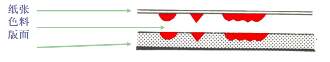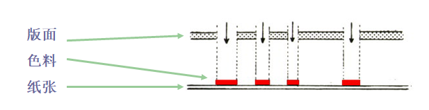 色料透过版面的漏孔,印刷至版材下方的纸张。