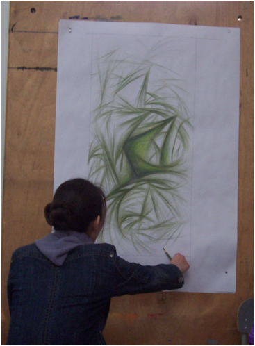将蜡烛用小刀削成蜡削,均匀的洒在透好稿的木板上