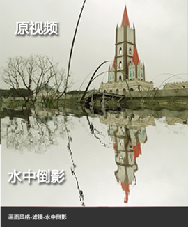 图9-14 使用“画面风格”功能调色 图9-15 “画面风格”的“水中倒影”效果