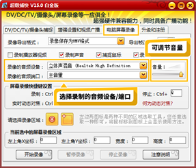 设置好电脑音频后,可以在软件“录像的音频设备/端口”处选择电脑录屏的声音,也可以选择录制麦克风的声音,如图9-21所示。