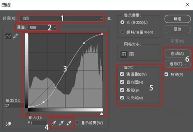 曲线工具快捷键是Ctrl+M,主要由6个部分构成,如图2-13所示: