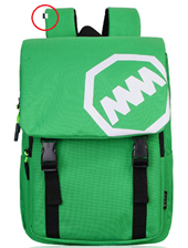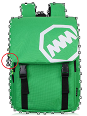 8、在“双肩包”素材中,靠近“双肩包”边缘单击起始点,如图2-62所示。选取第一个点,用鼠标沿着“双肩包”的边缘线滑过,磁性套索智能选取边界,为“双肩包”自动画好区域范围,“双肩包”细小的地方,可以自行单击鼠标,手动选取取点位置,如图2-63所示。鼠标回到起始点,变成一个小圆圈,单击使终点和起始点重合,形成闭合选区范围,如图2-63所示。