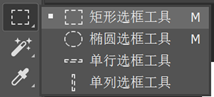 是Photoshop的区域选择工具,可以在图片上任意选取一个矩形或者圆形等形状的区域,进行剪切、填色或修改颜色等处理。工具有矩形选框工具、椭圆选框工具、单行选框工具和单列选框工具。