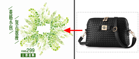 图2-59 手拿包放入背景 图2-60 调整手拿包大小和位置