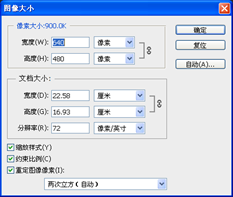 网站对上传的图片有宽高的限制,菜单中选择“图像”→“图像大小”进行调整,如图2-31所示。图像宽度设置为640像素,高度会等比例缩放自动调整。如果不需要等比例变化尺寸,可以把“图像大小”的“约束比例”打勾取消。分辨率设置为72像素/英寸。