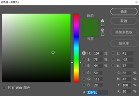 ,在拾色器中将前景色改为墨绿色,如图2-47所示。
