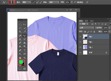 2、使用“颜色替换”工具为“T恤3”更换颜色